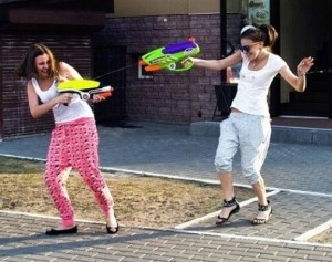 Ещё один забавный конкурс предполагает использование водных пистолетов, которые