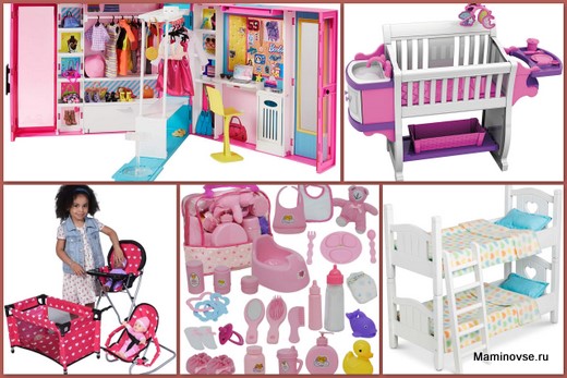 – дополнительные наборы для игры с куклами: домики, одежда, мебель, кроватки, коляски и многое другое.