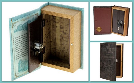 Уникальное изделие, которое будет служить как предметом декора в интерьере, так и местом для безопасного хранения различных вещей. Не занимает много пространства. Выполняется в разной цветовой гамме. Отлично смотрится на рабочем столе, не выделяется среди настоящих книг в шкафчике. Изготавливается из прочных сплавов и отделывается высококачественной бумагой.