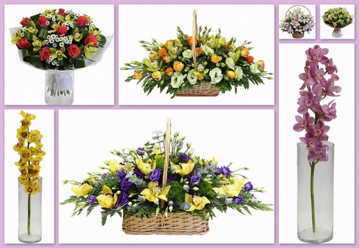 1. Орхидея в составе букетов. Специалисты, работающие в сфере флористики, могут составить однокомпонентные букеты, в которых будет представлена лишь одна орхидея, или же многокомпонентные, где орхидея будет удачно сочетаться с другими видами цветов – розами, хризантемами, гвоздиками, лилиями.