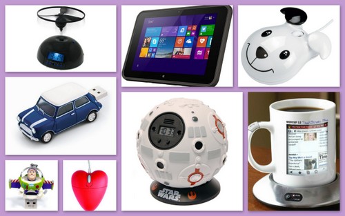 Интересными и функциональными подарками станут сохраняющая тепло чашка с юсб-подключением, мини-вентилятор для компьютерного стола, самоочищающийся аквариум, кружка с индикатором температуры напитка, светящийся Led-будильник с доской для записей.