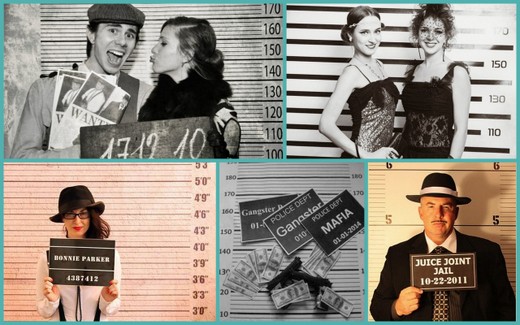 – для Гангстерской (или в стиле Чикаго) – гости рады будут получить фото в анфас и в профиль на фоне тюремного ростомера. Как вариант, зона с картонными фигурами звезд той эпохи.
