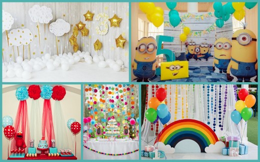 Детский день рождения. Фотозона, как и само детство, должна быть яркой, красочной, соответствующей тематике праздника. Можно обустроить зону с помощью воздушных шаров, огромных мягких игрушек, разноцветных декораций (фигурки героев из мультиков и комиксов, радуга с облачками и многое другое).