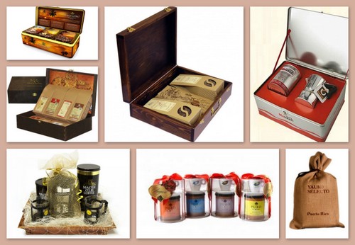 Наборы из двух и более видов кофе могут изначально быть помещены в подарочные коробки.