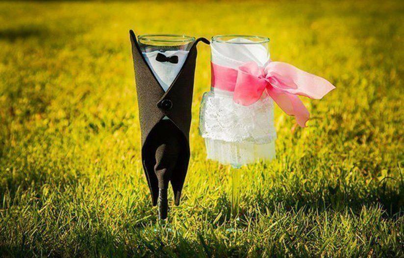 Такой декор станет основой любой сервировки свадебного застолья. В самой этой идее ничего нового нет, однако можно обыграть ее совсем по-другому.