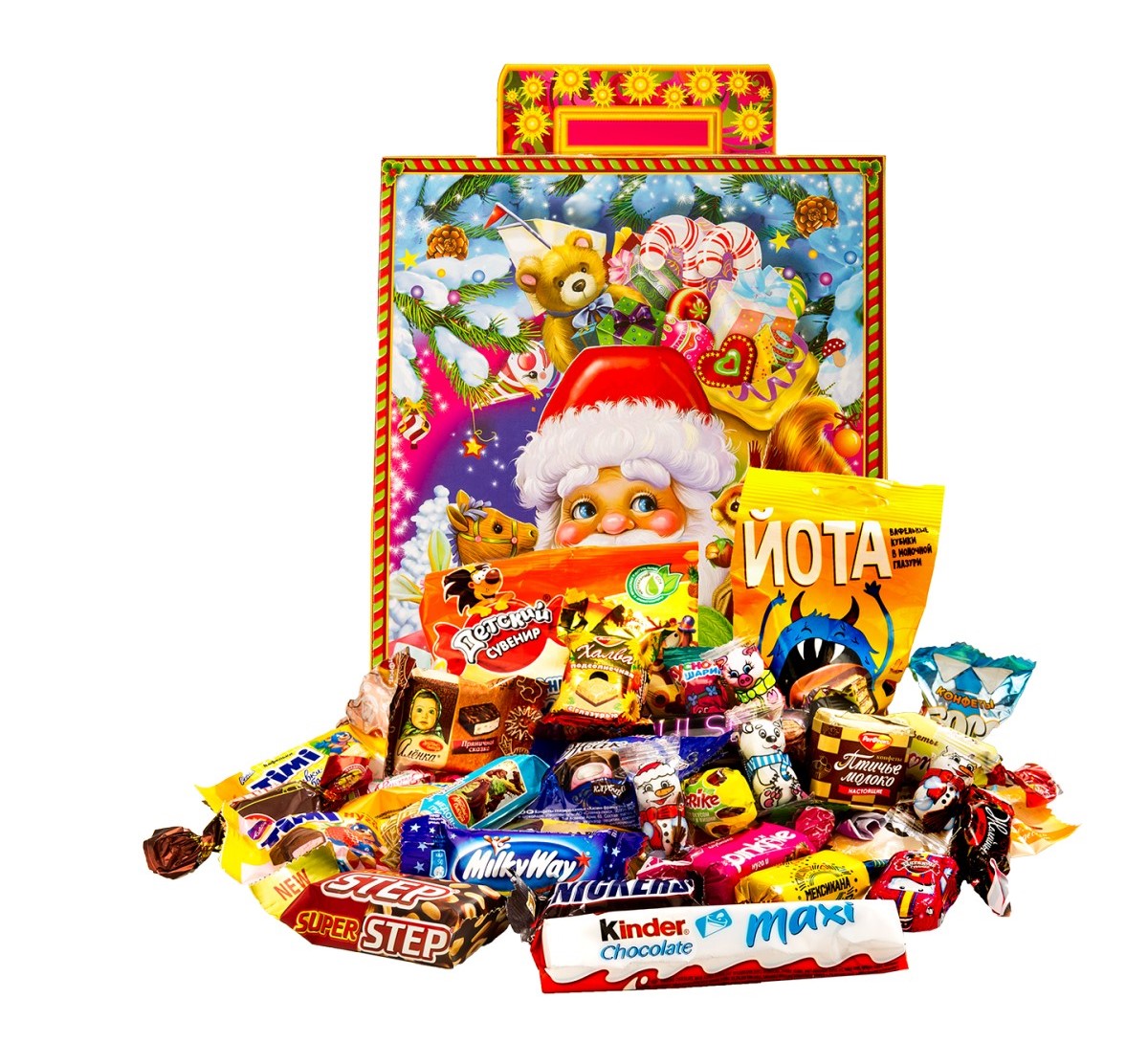 В презентах же для малышей и школьников есть много кондитерской продукции, которую можно назвать по-настоящему детской. Например, это пирожное «Мишка Барни», шоколад «Несквик», батончики «Милки Вей», шоколадные яйца «Киндер сюрприз» и др.