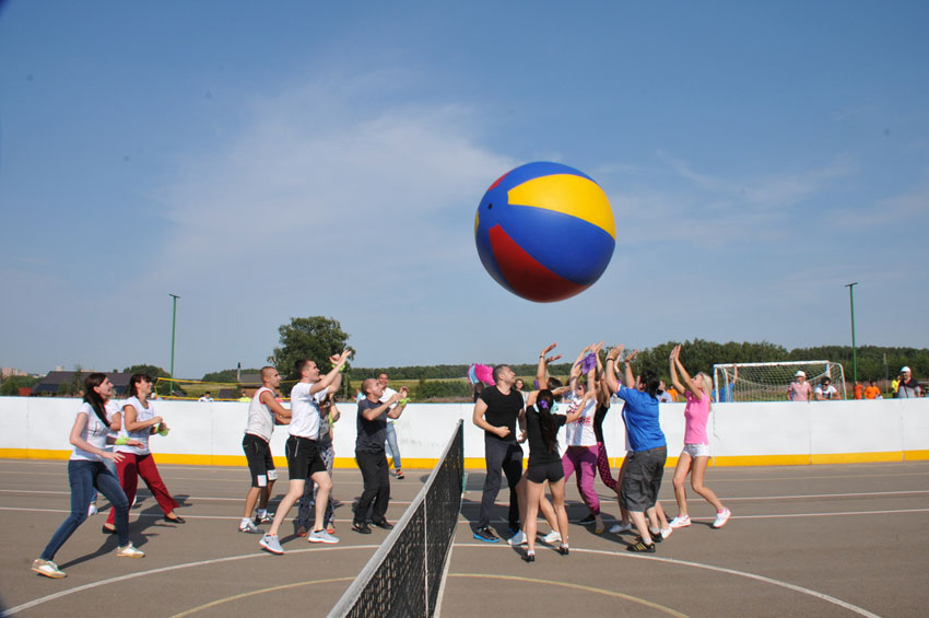 Уместны будут эстафеты. При этом эстафете можно придать схожесть с многоборьем. То есть, каждый этап соревнования будет отличаться от предыдущего. Существует масса вариантов эстафет, которые организуются специализированными компаниями в сфере тимбилдинга.